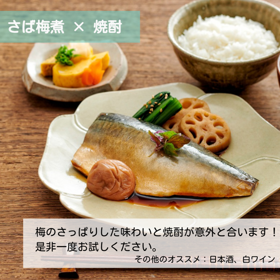脂ののったさばに、さっぱりとした酸味の梅干がよく合います。ご飯もお酒もすすむ逸品です。
